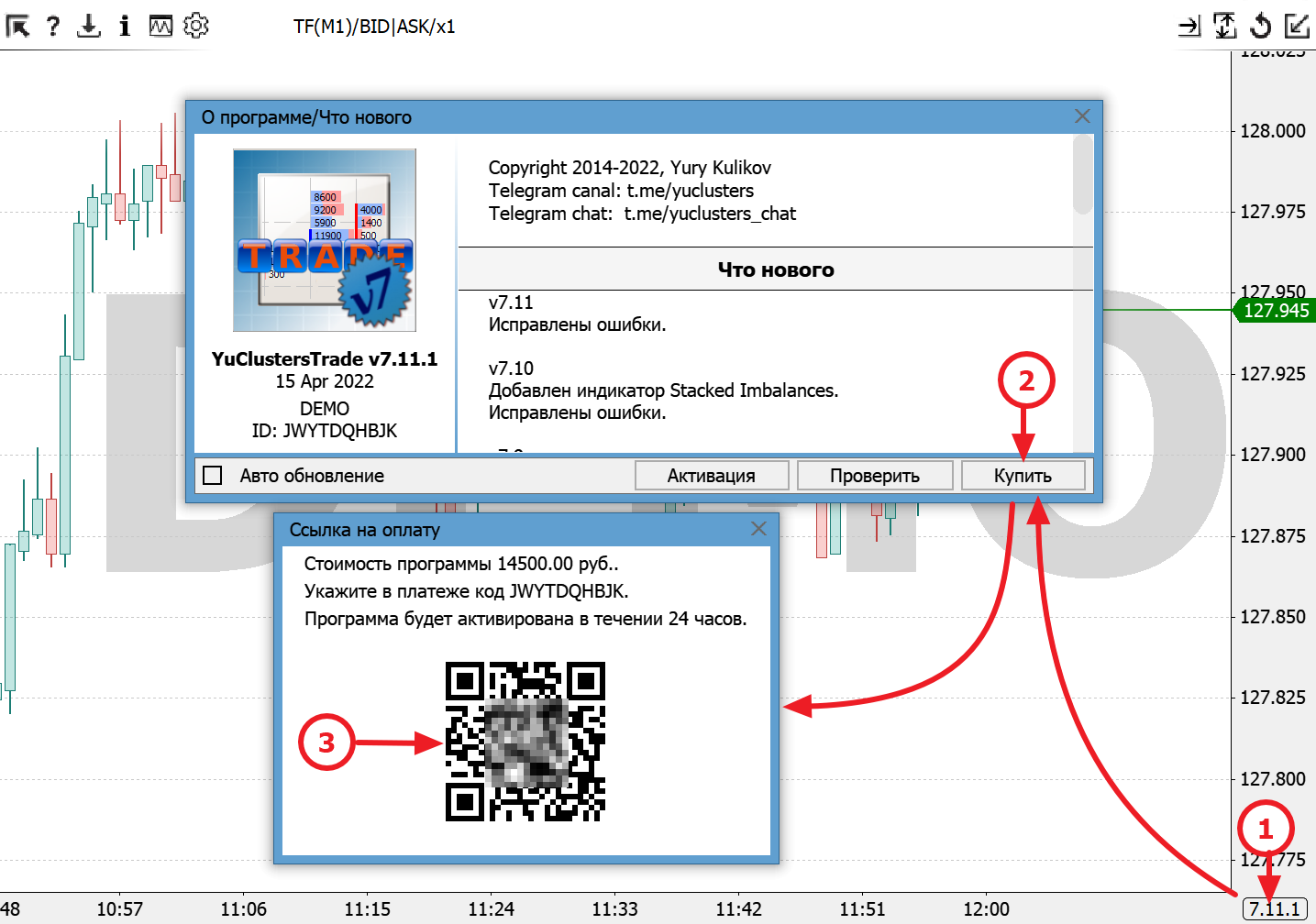 Регистрация YuClustersTrade - это привязка программы к уникальному идентификатору пользователя в Telegram. После регистрации пользователю будут доступны дополнительные возможности:
