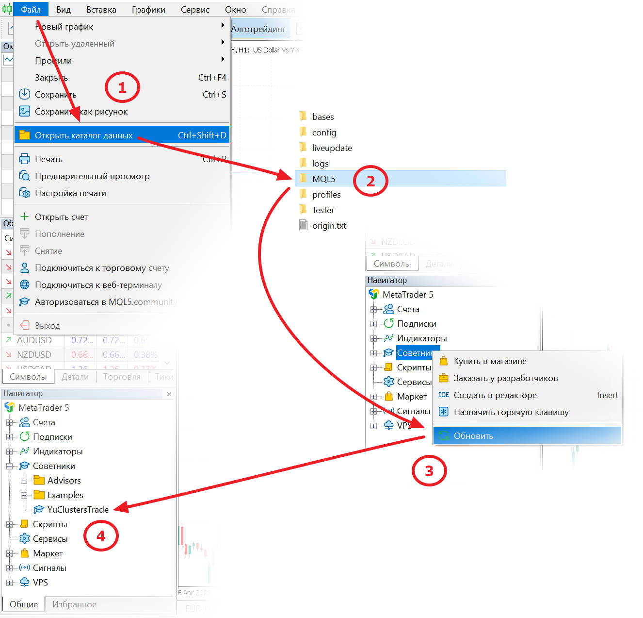 YuClustersTrade - это профессиональная торгово-аналитическая программа для терминала MetaTrader 5.